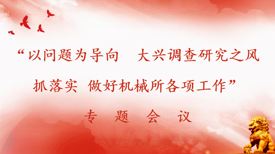 通過本次專題會議,全所人員一致表示要以習(xí)近平新時代中國特色社會主義思想為指導(dǎo),加強(qiáng)調(diào)研,以問題為導(dǎo)向,大興調(diào)查研究之風(fēng),抓落實(shí),做好機(jī)械所各項(xiàng)工作。