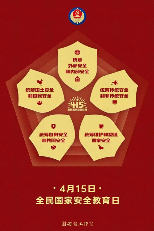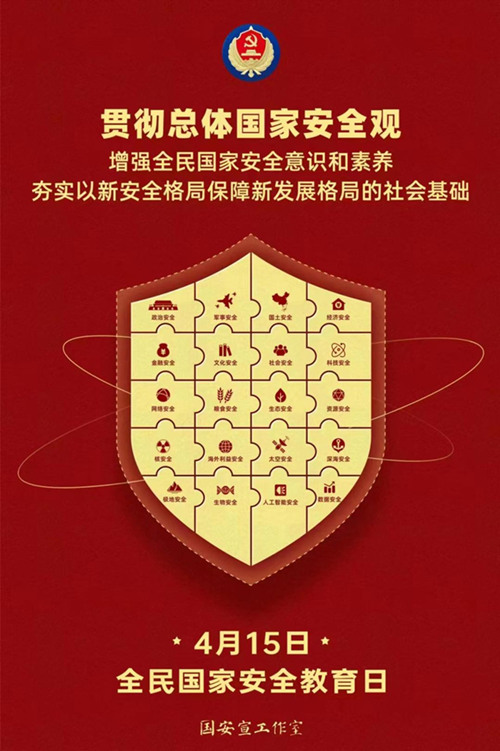 2023年4月15日是第八個(gè)全民國(guó)家安全教育日?;顒?dòng)主題為:“貫徹總體國(guó)家安全觀,增強(qiáng)全民國(guó)家安全意識(shí)和素養(yǎng),夯實(shí)以新安全格局保障新發(fā)展格局的社會(huì)基礎(chǔ)?!?/span>