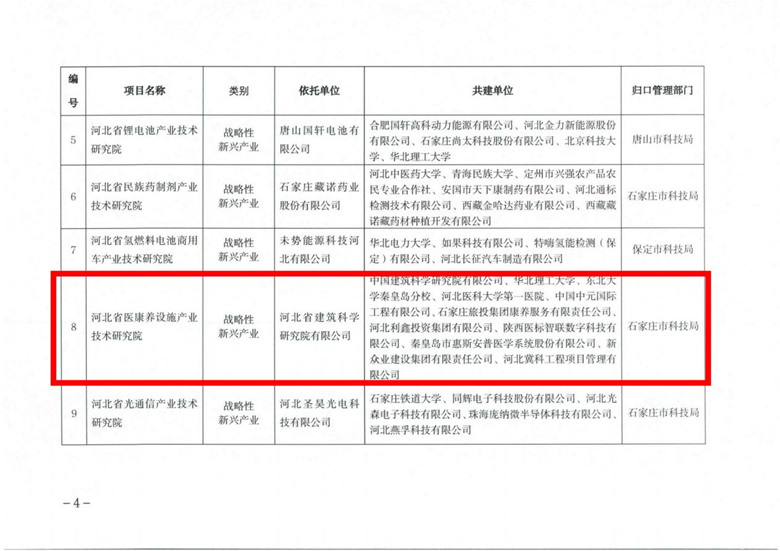 為深入貫徹落實(shí)黨的二十大精神,深入踐行“健康中國(guó)”戰(zhàn)略,立足醫(yī)康養(yǎng)融合高效發(fā)展,探索醫(yī)康養(yǎng)全產(chǎn)業(yè)鏈優(yōu)質(zhì)高效發(fā)展的路徑和舉措,河北省建筑科學(xué)研究院有限公司牽頭發(fā)起成立的河北省醫(yī)康養(yǎng)設(shè)施產(chǎn)業(yè)技術(shù)研究院近日通過(guò)河北省科學(xué)技術(shù)廳審批。